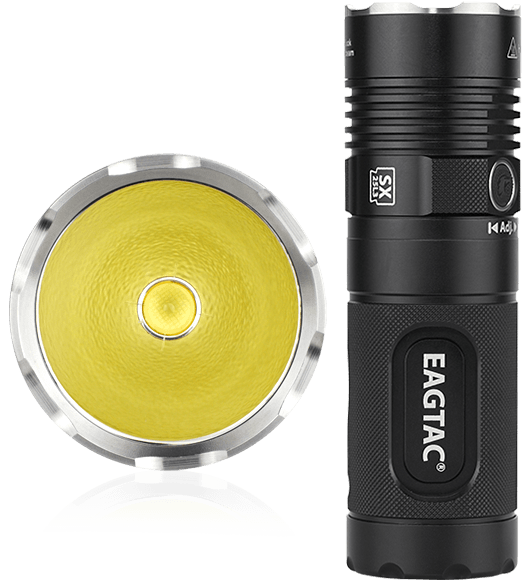 At its highest brightness output, SX25L3 runs for 2.7 hours (XM-L2) / 1.5 hour (MT-G2) using three EAGTAC 18650 3400mAh batteries with energy saving feature enabled. The circuit is also designed to handle six 3V primary CR123A batteries with the same great efficiency.